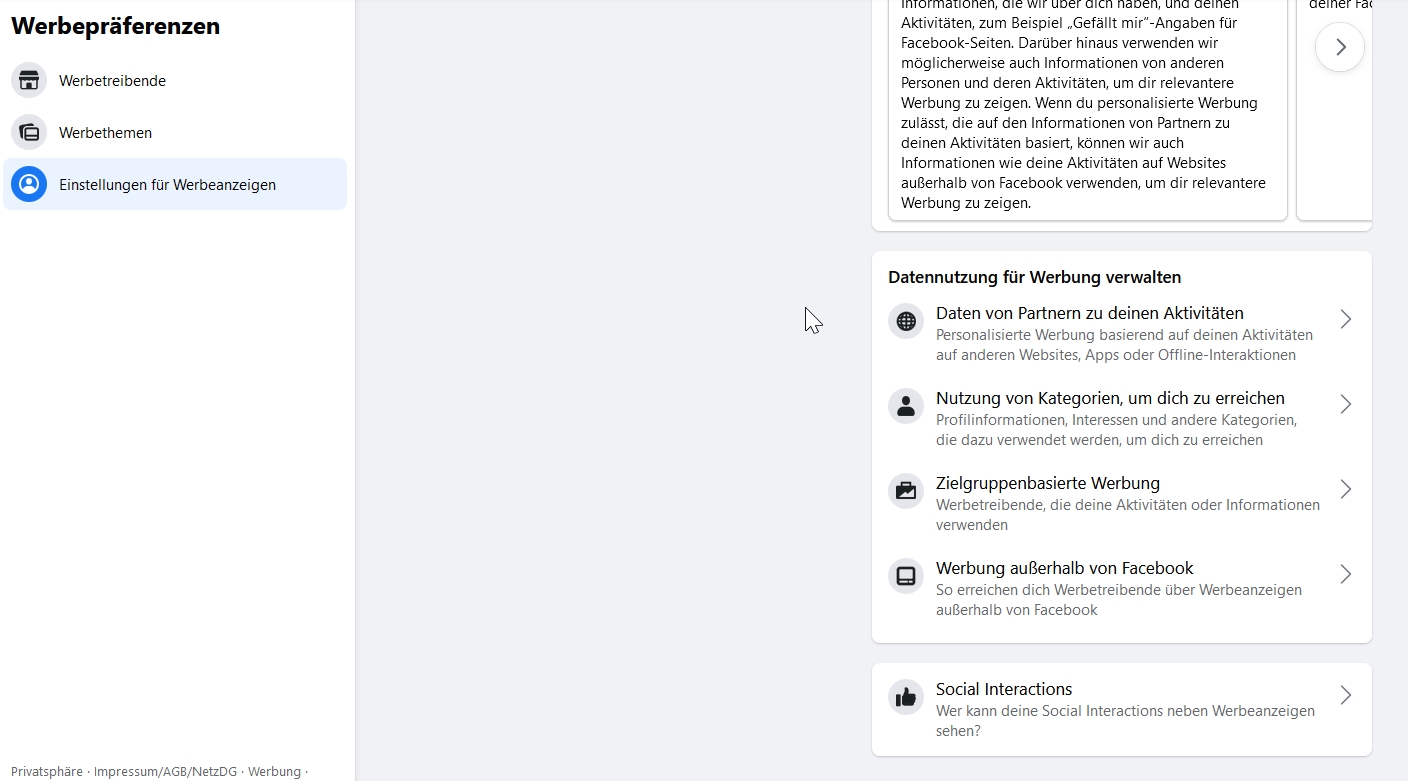 Die "Einstellungen für Werbeanzeigen" wären natürlich relevant ![]()