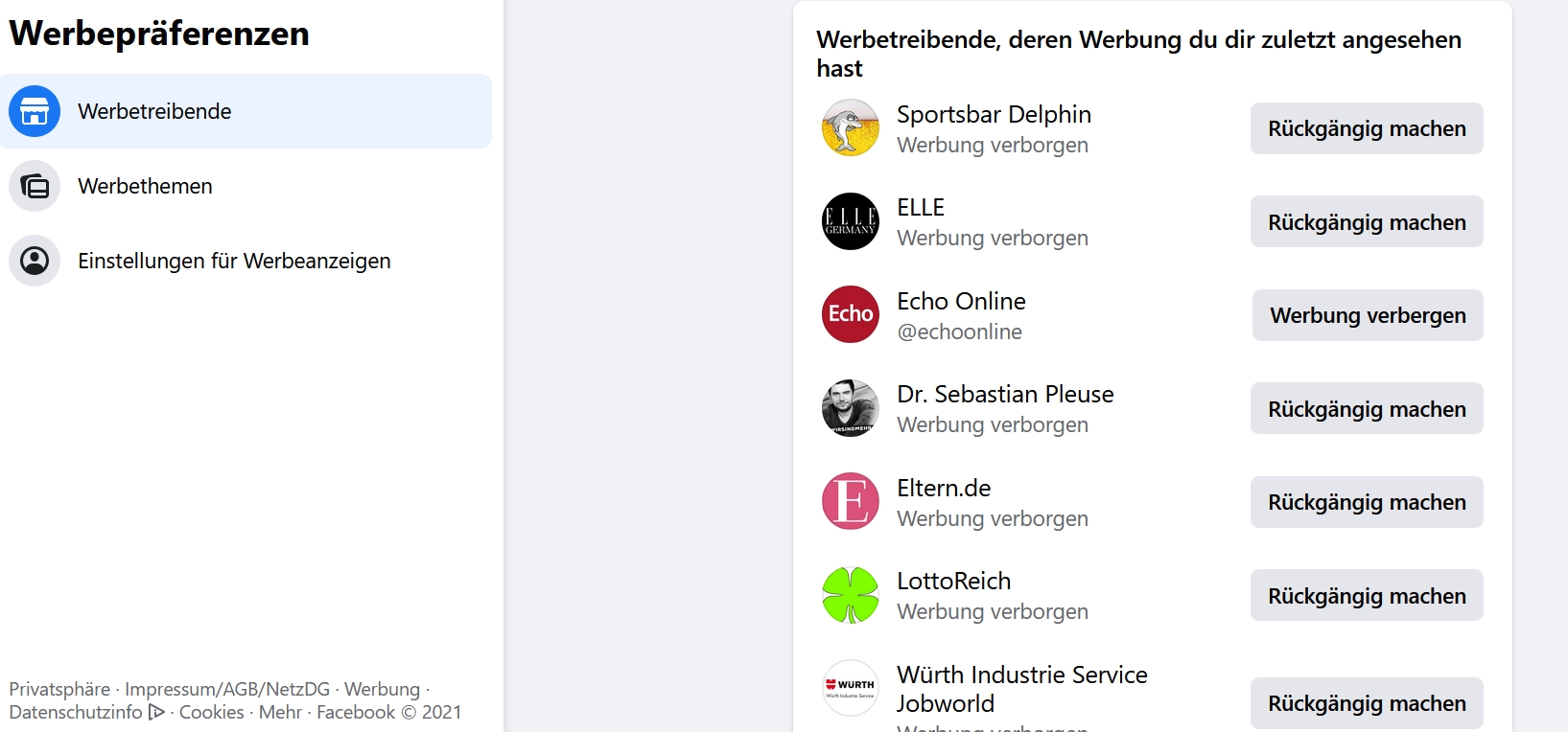 Die "Einstellungen für Werbeanzeigen" wären natürlich relevant ![]()