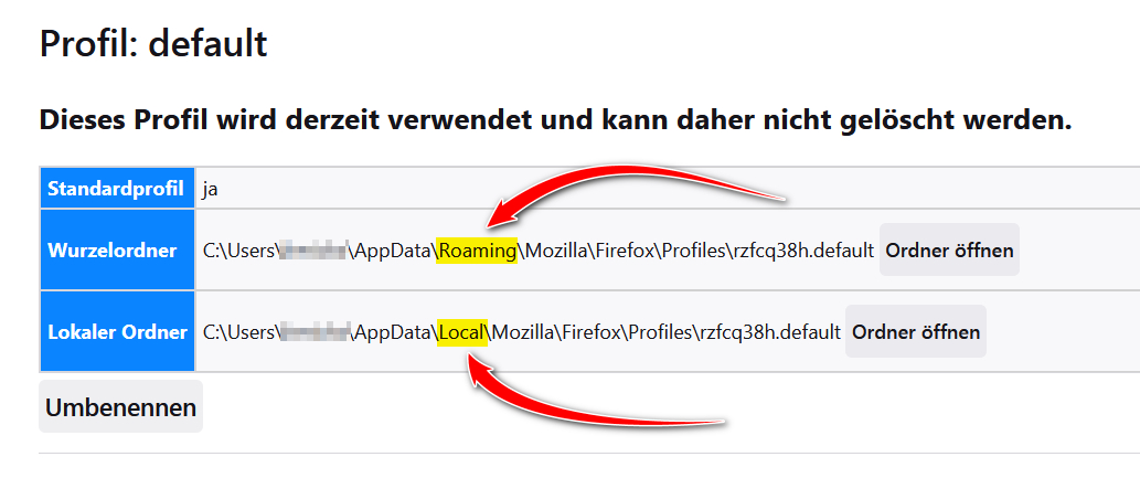• Ich habe gerade gesehen, bei mir gibt es zwei Mozilla/Firefox - Verzeichnisse.