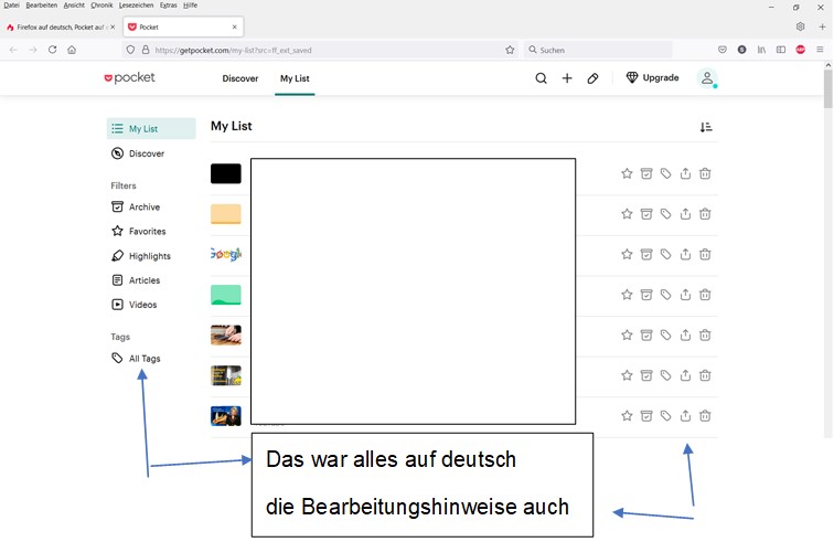 In Pocket ist aber alles in englisch geschrieben (z.B. All Tags, Highlight, all items etc.) - auch das hätte ich gerne auf deutsch.