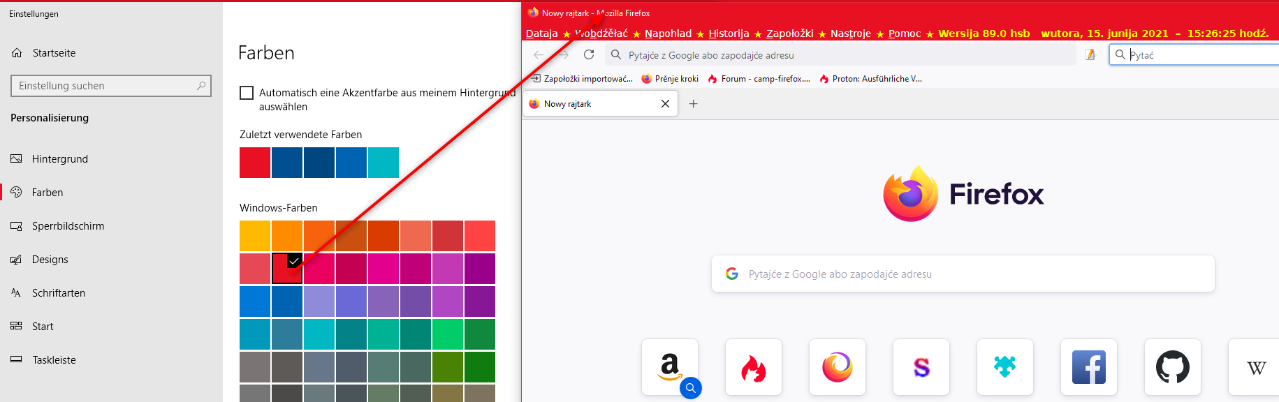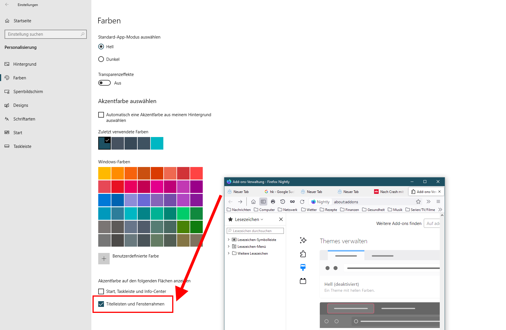 aktiviert ist. Ich möchte die Programmtitelleiste in der Systemfarbe sehen und die Menüleiste in einer anderen Farbe als die der Tabs.