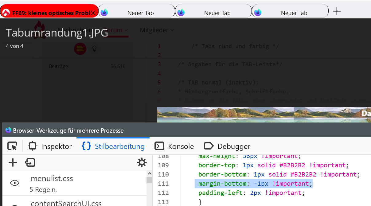 Jetzt fehlt es unten... oder die Tableiste 2 Px breiter.... ![]()