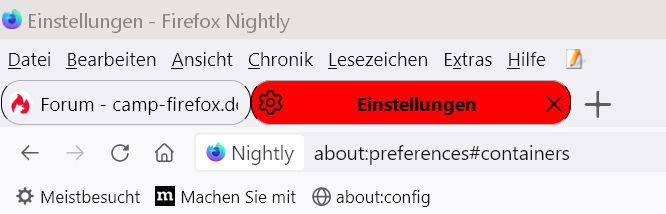 CSS Alles anzeigen/* Tabs rund und farbig */ /* Angaben für die TAB-Leiste*/ /* TAB normal (inaktiv): * Hintergrundfarbe, Schriftfarbe, * Rahmen um die TABs, oben abgerundet und Abstände angepaßt, * unten kein Rahmen -> Abschlußrahmen vom Container.*/ #TabsToolbar .tabbrowser-tab { color: black !important; border: 1px solid !important; border-bottom: 1px solid black !important; border-radius: 16px 16px !important; margin-top: 0px !important; padding: 0px !important; } /* TAB bei bei angewähltem TAB (aktiv): * Hintergrundfarbe, Rahmen, * Schriftfarbe. */ #TabsToolbar .tabbrowser-tab[selected="true"] { background: red !important; border-radius: 16px 16px !important; margin-top: 0px !important; padding: 0px !important; font-weight: bold !important; color: black ! important; } /* Tab-Icon etwas größer, * links weniger, unten etwas mehr Abstand zum TAB-Rand.*/ #TabsToolbar .tab-icon-image { height: 20px !important; width: 20px !important; margin-left: -5px !important; margin-bottom: 2px !important; } /* Tab-Schließen-Button: * Rechts weniger Abstand zum TAB-Rand, etwas größer, * Textfarbe (Kreuz) * Hintergrundfarbe, an den Eckenradius des Buttons angepaßt */ #TabsToolbar .tab-close-button { margin-right: -5px !important; color: black !important; } #TabsToolbar .tab-close-button .toolbarbutton-icon { height: 20px !important; width: 20px !important; background-color: red !important; border-radius: 14px !important; } /* Schliessen-Button nur wenn angewählt */ tab:not([selected]) .tab-close-button {display: none !important; } /* Alle anderen Elemente in den TABs ohne Hintergrund. */ #TabsToolbar .tabbrowser-tab * { background: none !important; } /* Schriftgröße Tabs */ .tab-text { font-size:15px !important; } /* Damit wird der Tabtext am Ende nicht ausgeblendet */ .tab-label-container[textoverflow][labeldirection=ltr]:not([pinned]), .tab-label-container[textoverflow]:not([labeldirection]):not([pinned]):-moz-locale-dir(ltr) { direction: ltr; mask-image: linear-gradient(to left, transparent, black 0em) !important; } /* Doppelte Schliessung ausblenden */ #TabsToolbar > .titlebar-buttonbox-container { display:none !important; } /* Tabs Proton-Design */ :root { --proton-tab-radius: 0px !important; --proton-tab-block-margin: 0px !important; --inline-tab-padding: 10px !important; } #TabsToolbar { min-height: 36px !important; max-height: 36px !important; border-top: 1px solid #B2B2B2 !important; border-bottom: 1px solid #B2B2B2 !important; margin-bottom: 1px !important; padding-left: 2px !important; } #TabsToolbar .toolbarbutton-1 { margin-top: 2px !important; margin-bottom: 2px !important; } #TabsToolbar .toolbarbutton-1 > image { padding: 2px 4px !important; } /* Rahmen um die Tableiste durchsichtig */ #TabsToolbar { border: 0.2px solid transparent !important; } #TabsToolbar:hover { border: 0.2px solid transparent !important; } .tabbrowser-tab[label*=" - YouTube"] .tab-content, .tabbrowser-tab[label*="YouTube - youtube.com"] .tab-content { background-image: linear-gradient(to bottom, red 0%, red 14%, red 14%, red 100%) !important; } .tabbrowser-tab[label*=" - YouTube"][selected="true"] .tab-content, .tabbrowser-tab[label*="YouTube - youtube.com"][selected="true"] .tab-content { background-image: linear-gradient(to bottom, green 0%, green 14%, red 14%, red 100%) !important; } .tabbrowser-tab[label*=" - YouTube"]:hover .tab-content, .tabbrowser-tab[label*="YouTube - youtube.com"]:hover .tab-content { background-image: linear-gradient(to bottom, saddlebrown 0%, saddlebrown 14%, saddlebrown 14%, saddlebrown 100%) !important; } .tabbrowser-tab[label*=" - YouTube"][selected="true"]:hover .tab-content, .tabbrowser-tab[label*="YouTube - youtube.com"][selected="true"]:hover .tab-content { background-image: linear-gradient(to bottom, green 0%, green 14%, saddlebrown 14%, saddlebrown 100%) !important; } .tabbrowser-tab .tab-content vbox.tab-label-container.proton { -moz-box-orient: horizontal !important; } .tabbrowser-tab .tab-content vbox.tab-label-container.proton hbox.tab-icon-sound { margin-top: 0px !important; margin-right: 0px !important; } .tab-icon-sound[soundplaying="true"], .tab-icon-sound[muted="true"], .tab-icon-sound[activemedia-blocked="true"] { background: #FFF !important; padding: 0 1px !important; } .tab-icon-sound[soundplaying="true"] .tab-icon-sound-image, .tab-icon-sound[muted="true"] .tab-icon-sound-image, .tab-icon-sound[activemedia-blocked="true"] .tab-icon-sound-image { fill: #F10 !important; } .tab-icon-sound-image { height: 1.7em !important; } .tabbrowser-tab .tab-content vbox.tab-label-container.proton label[class="tab-icon-sound-label tab-icon-sound-blocked-label"], .tabbrowser-tab .tab-content vbox.tab-label-container.proton label[class="tab-icon-sound-label tab-icon-sound-playing-label"], .tabbrowser-tab .tab-content vbox.tab-label-container.proton label[class="tab-icon-sound-label tab-icon-sound-muted-label"] { display: none !important; } /* Tab Beschriftung mittig */ .tab-content { display: flex !important; justify-content: center !important; align-items: center !important; } .tab-label-container { margin: auto !important;} .tabbrowser-tab > .tab-stack > .tab-content > .tab-close-button { flex-shrink: 0 !important; padding: 0px !important; padding-top: -5px!important; width: 16px !important; } /*Tabs in Tableiste mittig*/ scrollbox:not(#PlacesToolbarItems) { -moz-box-pack: center !important; } /* Lautsprechersymbol größer */ .tab-icon-overlay { transform: scale(1.7, 1.7) !important; } image.tab-icon-overlay { top: 3px !important; padding-right: 3px !important; } /* Aktiver Tab breiter */ .tabbrowser-tab:not([pinned]):not([selected]) { min-width: 200px !important; max-width: 200px !important; } .tabbrowser-tab:not([pinned])[selected] { min-width: 256px !important; max-width: 256px !important; } /* Schatten drum */ #TabsToolbar:not([brighttext]) #tabbrowser-tabs:not([noshadowfortests]) .tabbrowser-tab:is([visuallyselected="true"], [multiselected]) > .tab-stack > .tab-