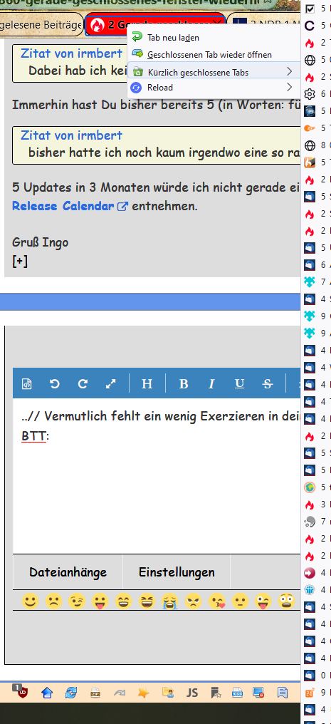 Diese Nachricht schicke ich übrigens aus einem anderen Browser – Firefox wage ich nicht zu schließen oder sonst anzutasten, bis ich sicher bin, was zu machen ist.