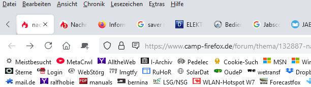 Nach dem letzten FF Update auf 89.0 habe ich Probleme mit meinen über userchrome.css aktivierten multirows. Ich nutze neben TreeStyleTab (für meine geöffneten Tabs) schon seit Jahren multirow (früher als add-on) für meine Lesezeichen. Es gab im Netz immer gute Beispiele zu multirows über die userchrome.css, die ich dann nur geringfügig für meine Zwecke modifizieren musst und bisher soweit immer funktioniert haben. Max 6 zeilen, die automatisch aufklappen, wenn ich mit der Maus auf die Menüleiste gehe, so dass ich dann ein entsprechendes Lesezeichen anklicken kann. Seit dem Update klappen die multirows zwar mit allen ihren Zeilen auf, ich kann aber mit viel Glück gerade noch bis auf ein Lesezeichen in der ersten Reihe positionieren und es auswählen. Wenn ich versuche weiter nach unten in eine angrenzende Zeile zu gehen, klappen die multirows sofort wieder zu. Ebenso wenn ich es zwar geschafft habe, in der obersten zeile auf ein Lesezeichen zu positionieren, dann aber nach links oder rechts zu einem anderen Lesezeichen gehen will - sofort klappen die gesamten multirows wieder zu. Ich hänge hier mal meine userchrome.css an - vlt. weiß ja jmd., wo es durch das neue FF update hakt.