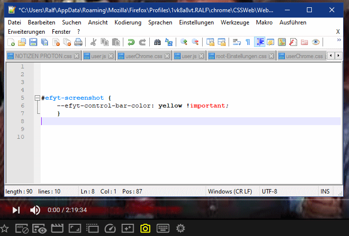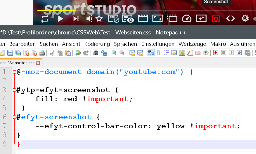 weis jemand wie man aus diesers Addon "Enhancer for YouTube" den Button im Videoplayer auf Youtube für Screenshot (Kamera) eine andere Fabre geben kann auser weiß ?