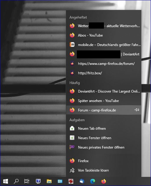 Das ist problemlos möglich über die Chronik. Dazu muss ich aber erst den Browser aufrufen. Daher frage ich an, ob diese Option unter Win10 beim Klick auf das Taskleistensymbol mit der rechten Maustaste hinzugefügt werden kann; sozusagen als Shortcut, neudeutsch Abkürzung: