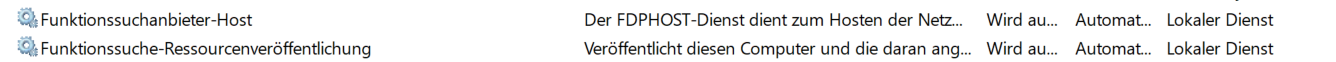 Alles nochmal kontrolliert, Dienste sind alle auf automatisch. Win11_1 hat sogar alle anderen Rechner als Gerät erkannt, wenn auch als "nicht verbunden", Win10+Win11_2 weder noch. Der Zugriff über Name \\Rechner funktioniert aber bei allen, es gibt nämlich Verknüpfungen dahin, weil ich den Umweg über "Netzwerk" nicht machen will.