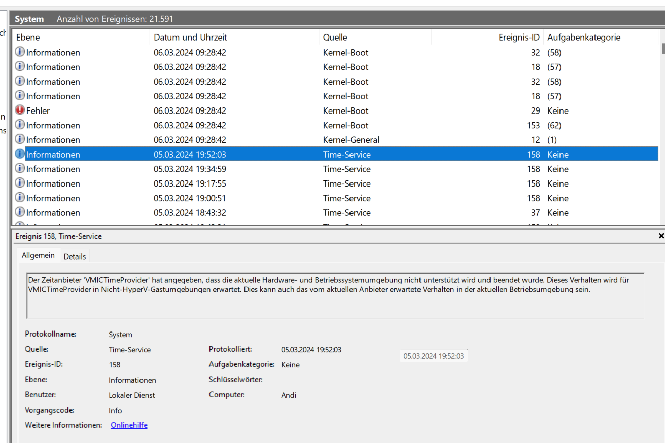 das meinte ich nicht. Das ist ziemlich nichtssagend. Ich halte vom Zuverlässigkeitsverlauf eh nicht so viel. Schau bitte mal direkt in die Ereignisanzeige. Dort sollte das Ereignis protokolliert sein. Das sieht dann in etwa so aus: