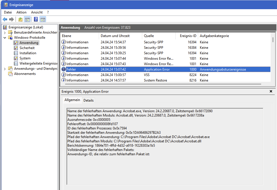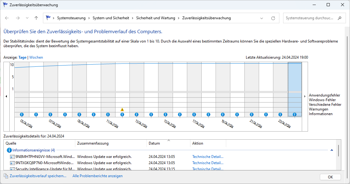 Muss ich mal abwarten, ich habe die Windows 11 Ereignisanzeige gelöscht.