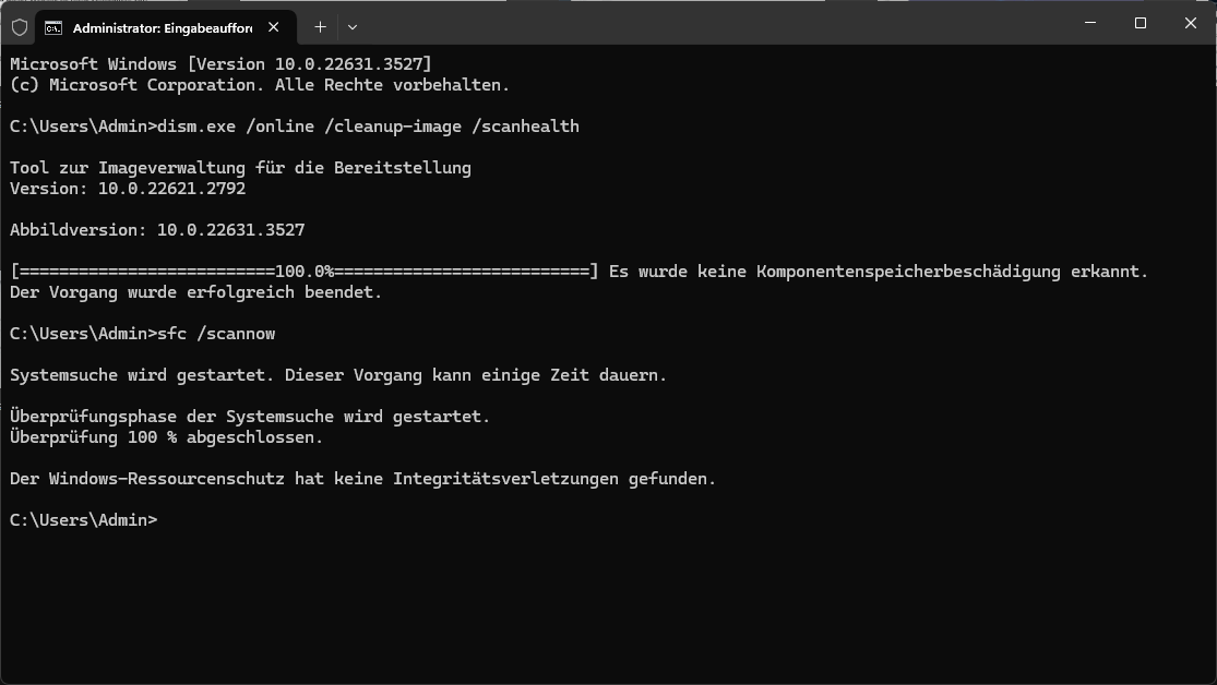 Name des fehlerhaften Moduls: KERNELBASE.dll, Version: 10.0.22621.3527, Zeitstempel: 0x83efbeab