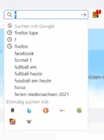 Suche ich aber direkt in der Adressleiste, erscheint der Hinweis nicht.