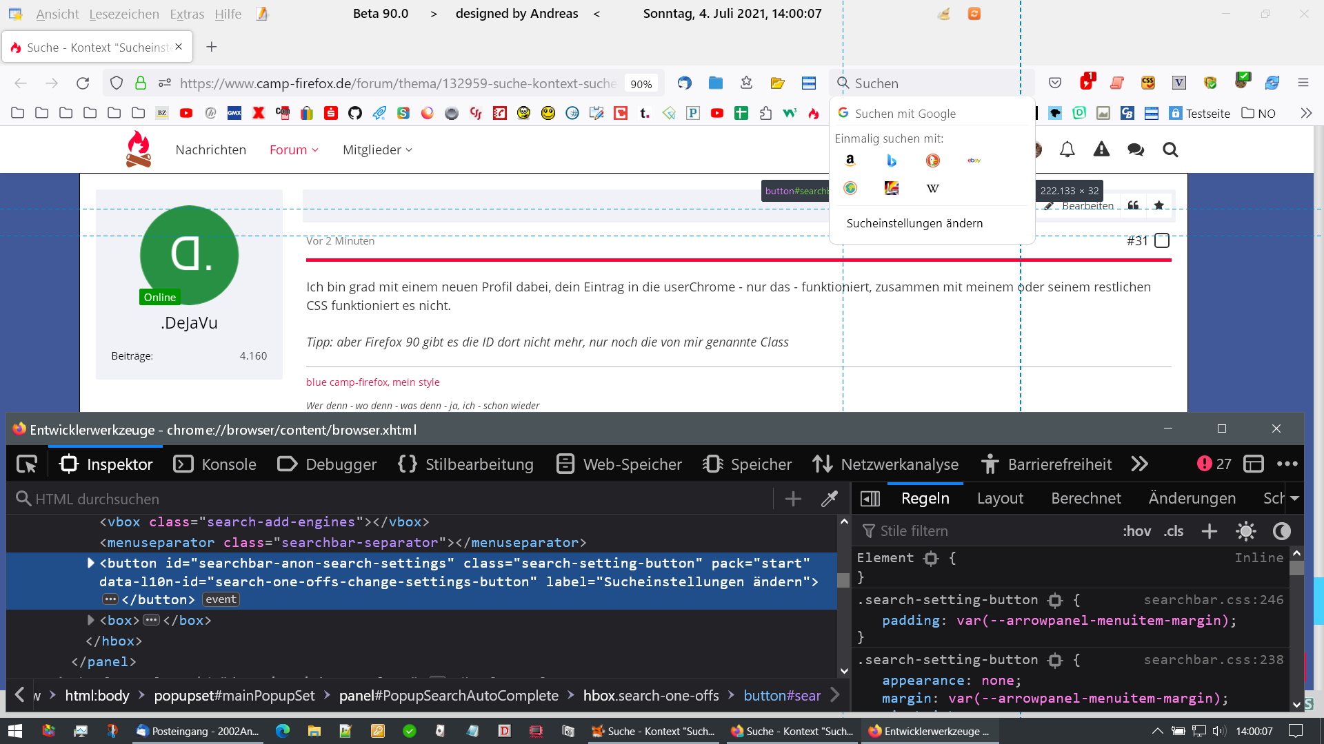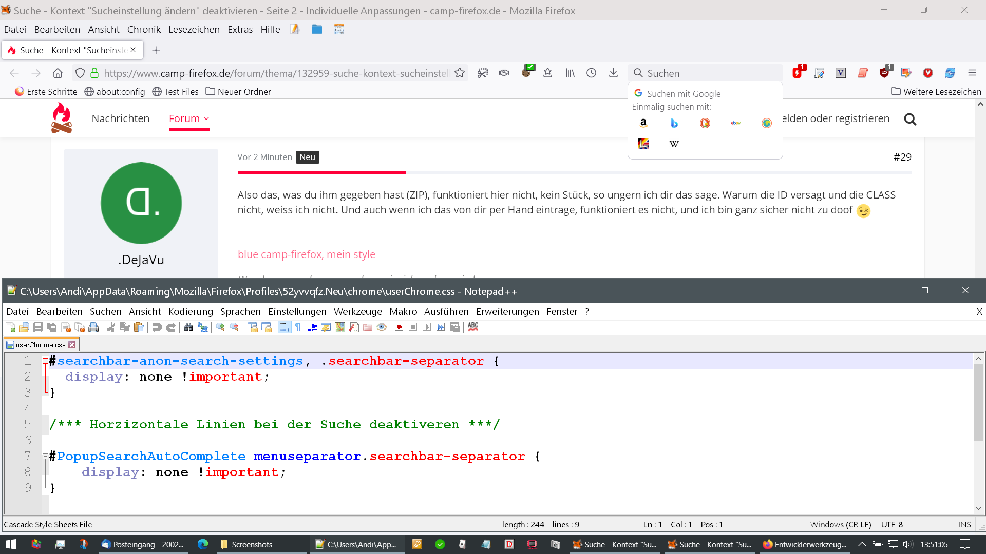 Hier mal die Sucheinstellung wie ich sie aktuell in Firefox eingerichtet habe