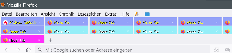Hatte es bisher über die userchrome.css geschafft, dass meine Tabs in mehreren Reihen angezeigt wurden. Bisher hatte ich 5 Reihen und erst dann kam der scroll-Balken.