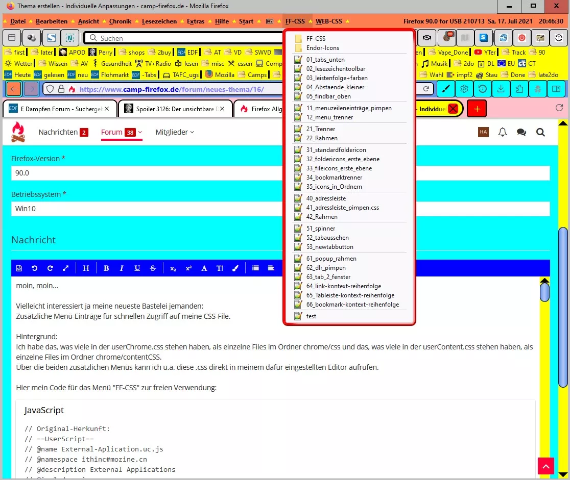// Zusätzliches Menü, um die Bearbeitung von CSS-Codes für FF zu vereinfachen: "FF-CSS"