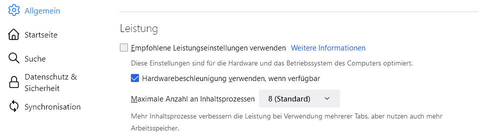 Also die "Hardwarbeschleunigung" ist ist mir im FF aus.