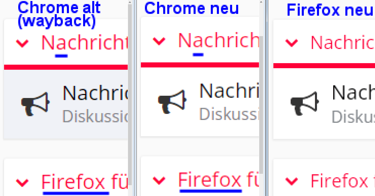 habe eben festgestellt, dass sich hier im Forum das Schriftbild bei Themenüberschriften und dem Usernamen in die Richtung verändert haben, dass jetzt die Ränder der einzelnen Zeichen ausgefranzter und pixeliger als vorher sind. Alle anderen Bereiche im Forum scheinen hingegen normal, mit glatten Rändern, dargestellt zu werden.