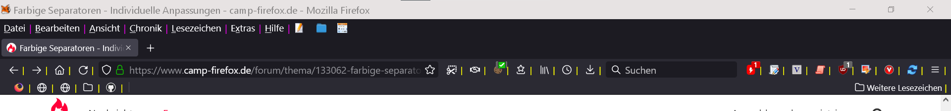 Links und rechts neben der Adressleiste sitzen die Separatoren in gelb. Soll so bleiben