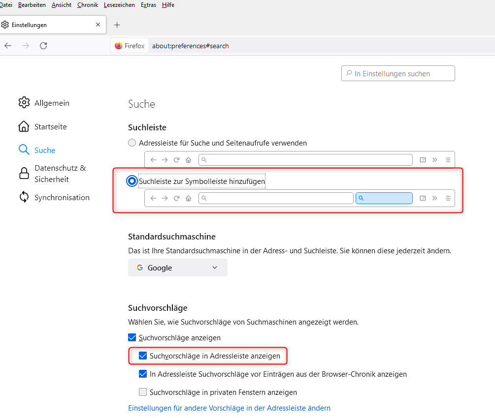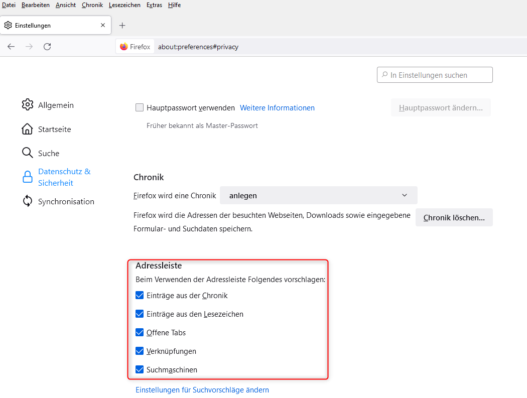 • Wäre mir jetzt (siehe auch Sören) neu, dass ein Update die Einstellungen zu den Suchvorschlägen so gravierend ändert.