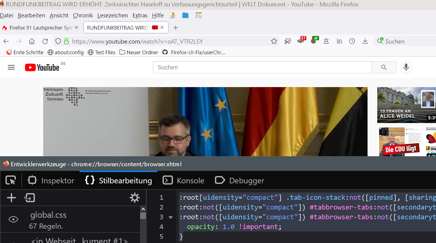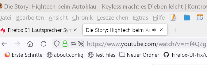 Firefox 91 Lautsprecher Symbol rechts