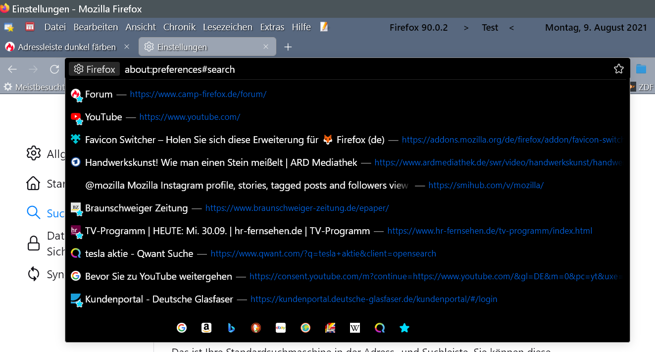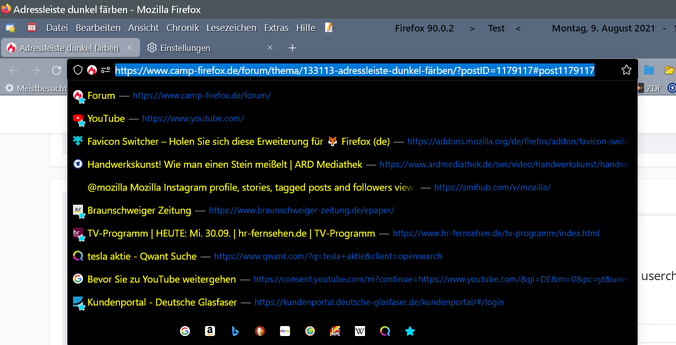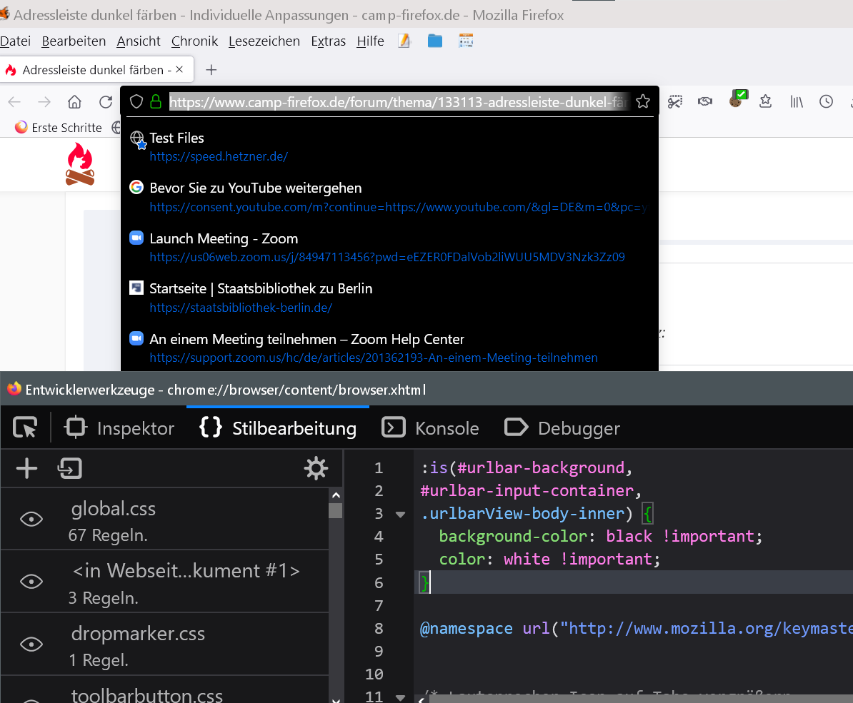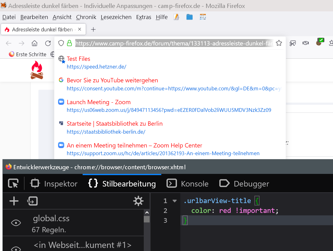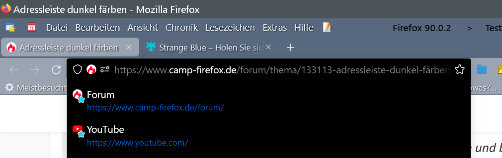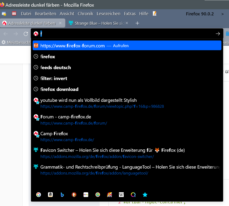 Ich würde sie gerne dunkel färben, also weißer Text auf dunklem Grund, wie im Standard-Dark-Theme von Firefox.