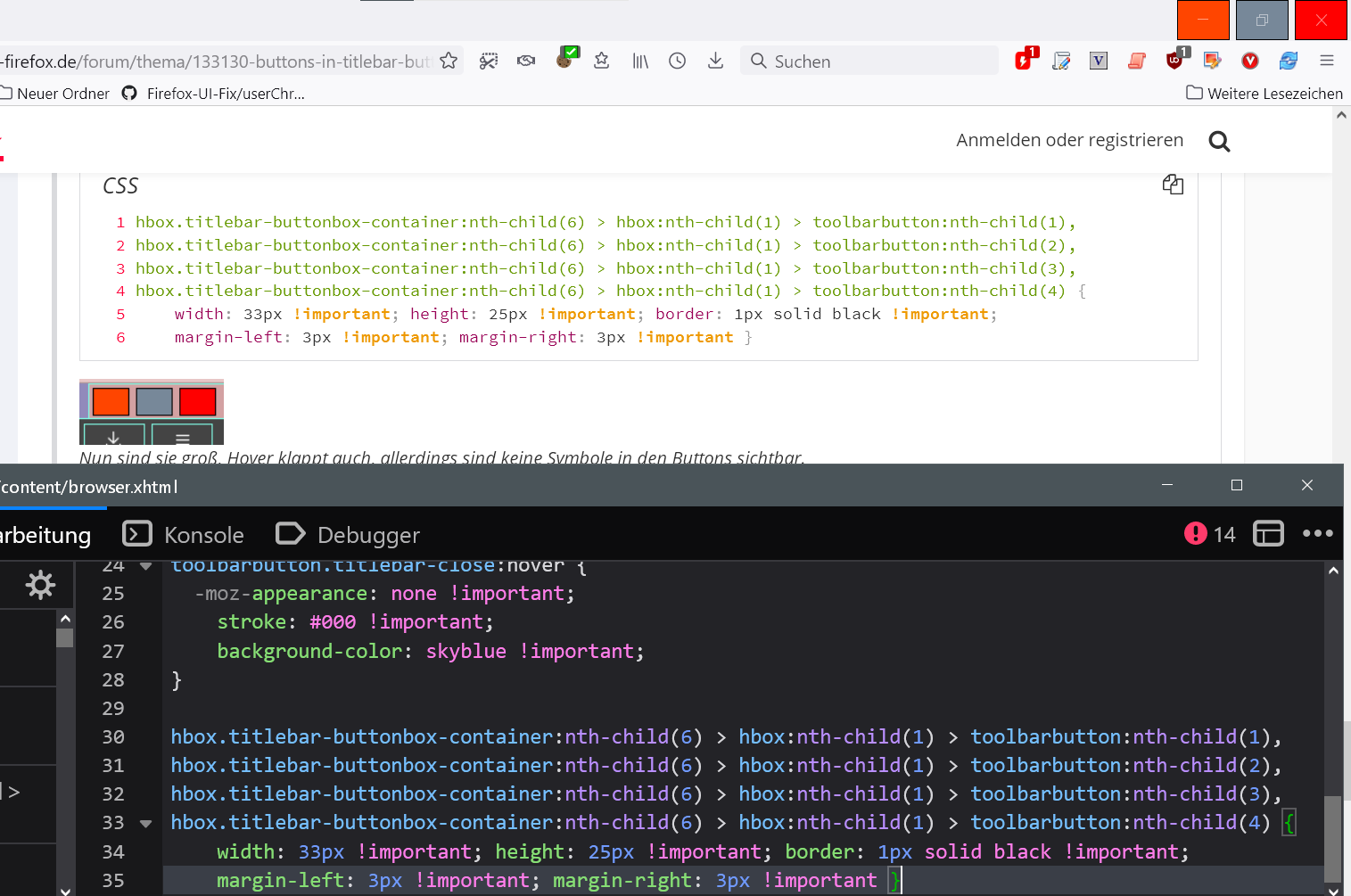 Das ist übrigens der Code, mit dem ich Hintergrund und Rand des titlebar-buttonbox-container geändert hatte:
