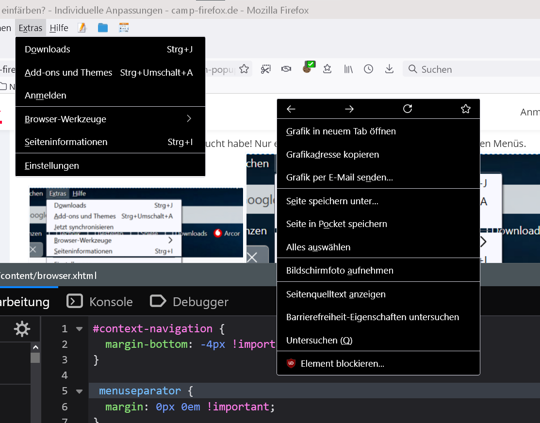 Hintergrund von Popup- und Kontextmenü einfärben?