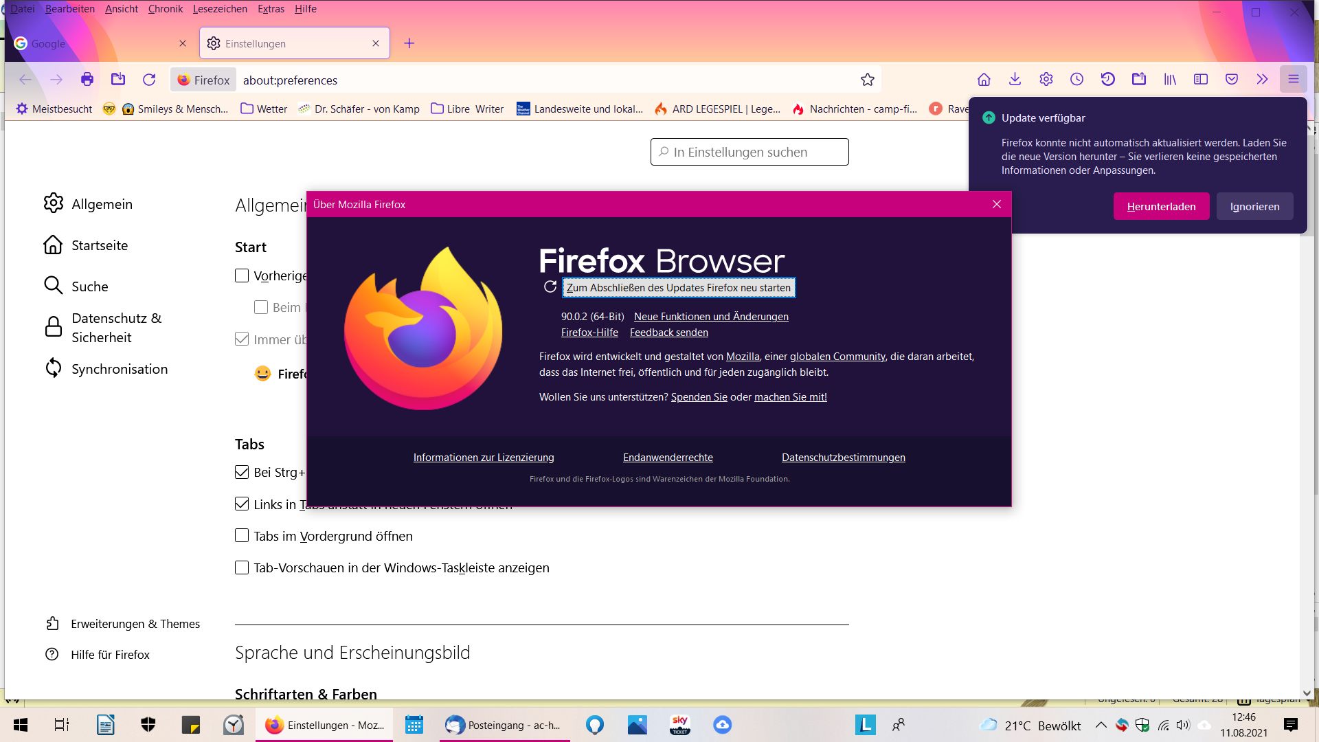 Firefox kann die Version nicht automatisch aktualisieren .