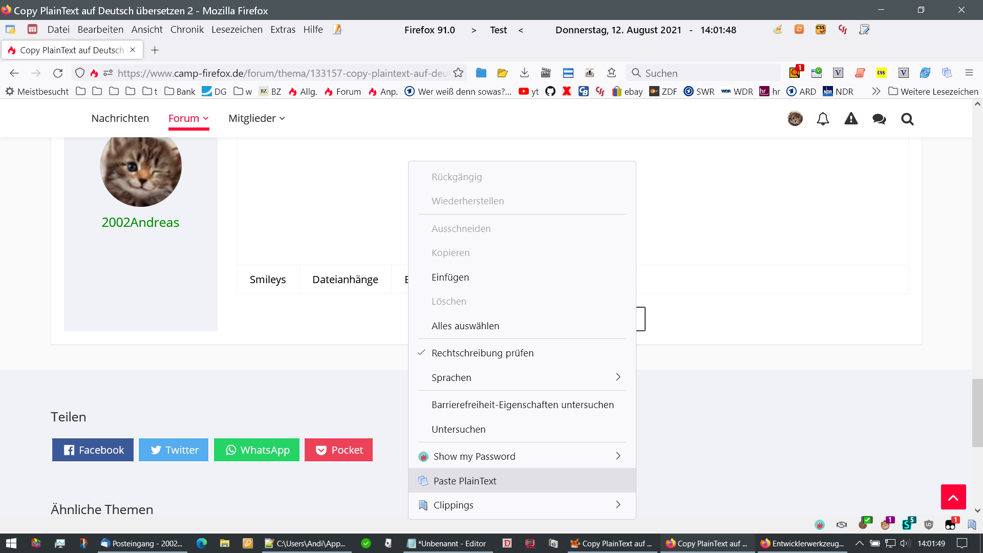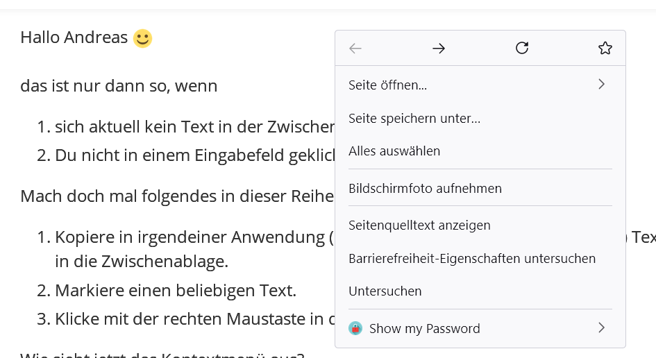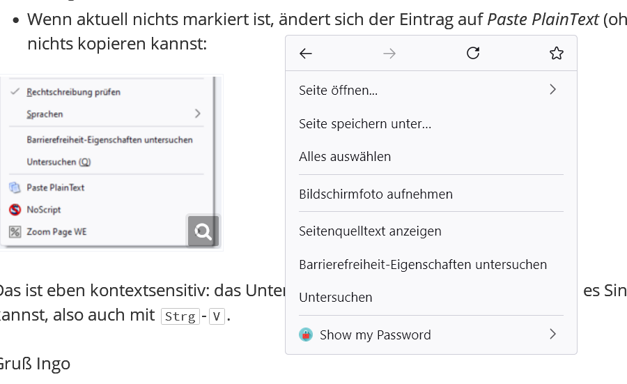 (Vorher habe ich Text in die Zwischenablage kopiert)