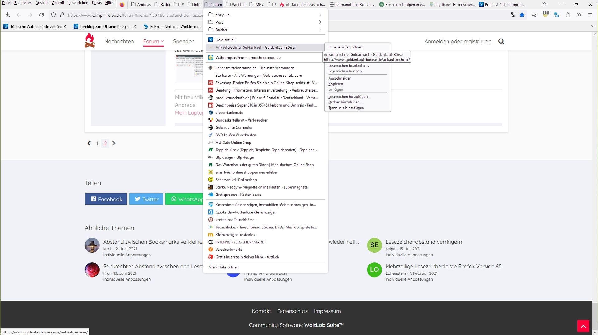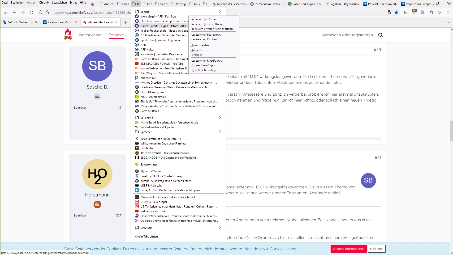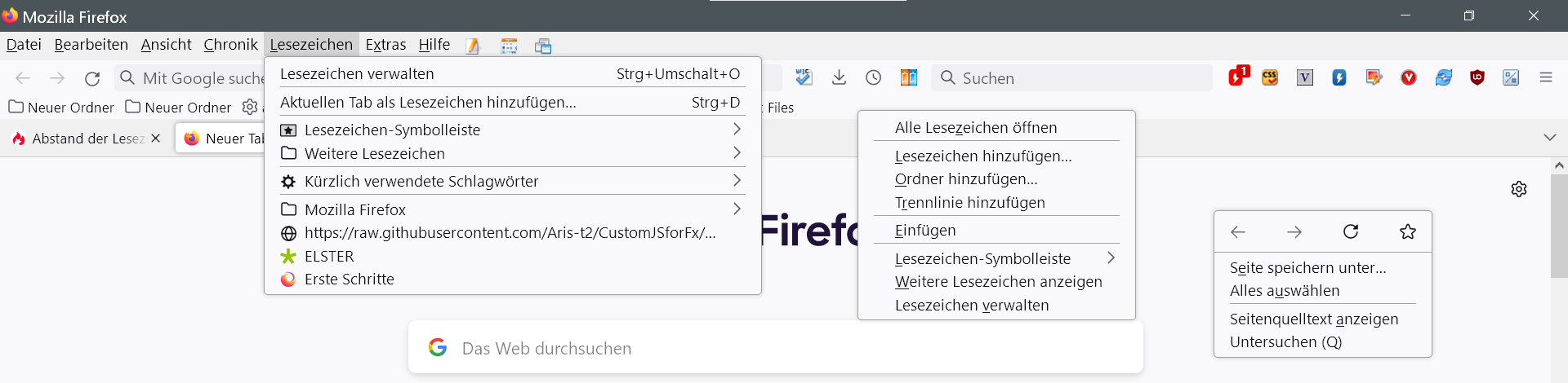 "browser.proton.contextmenus.enabled" steht auf true. Die Umstellung auf false hatte ich zuerst probiert, hatte mir im Juni geholfen, heute leider nicht mehr.