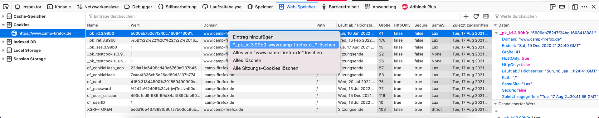 Die Frage kommt auf weil ich mich gerade etwas ärgere wie das alles gemacht wird von Mozilla und sicher nicht nur bei denen. Von damals man kann ganz bestimmte Cookies für immer behalten über entweder nichts automatisch löschen dann kann man auswählen was man will über nun das hier. Man kann nur raten was für Cookies gesetzt sind weil man nur das übergeordnete Cookie sieht aber nicht was sonst noch irgendwie gesetzt wurde. Will ich angemeldet bleiben kann ich dann gar nichts mehr löschen.