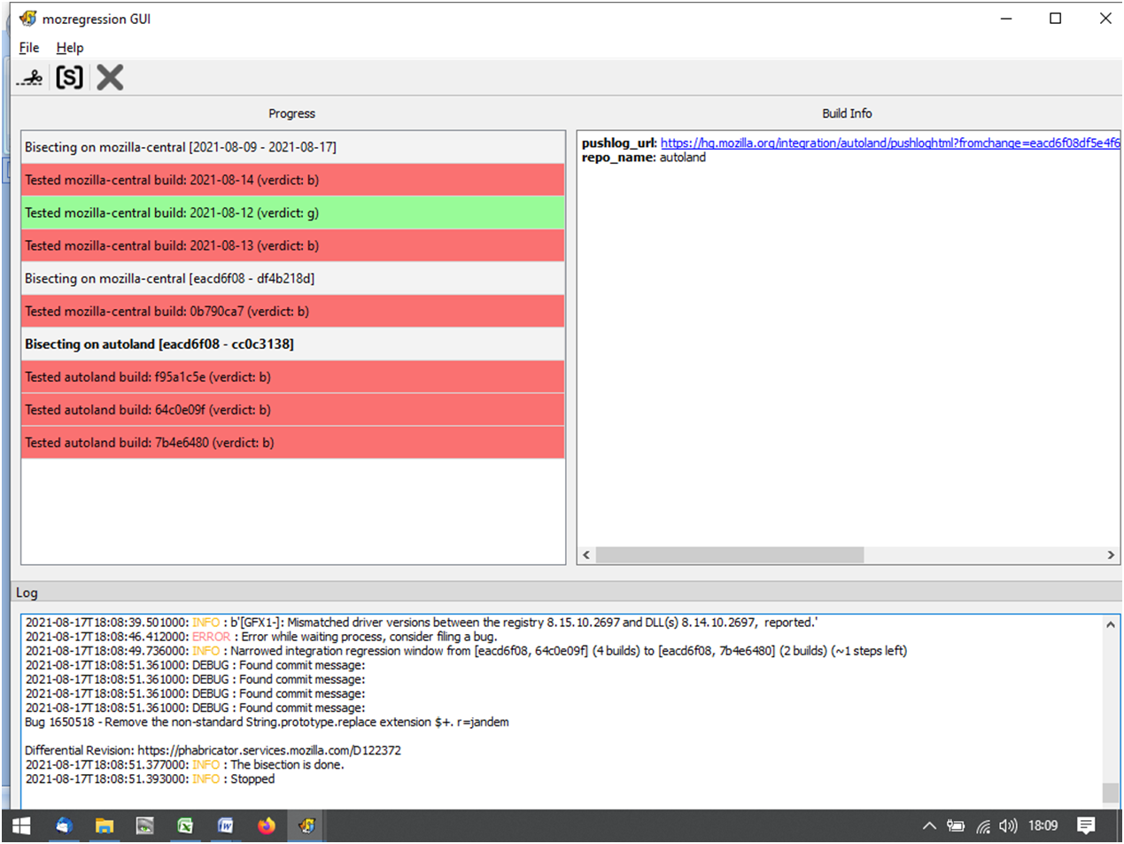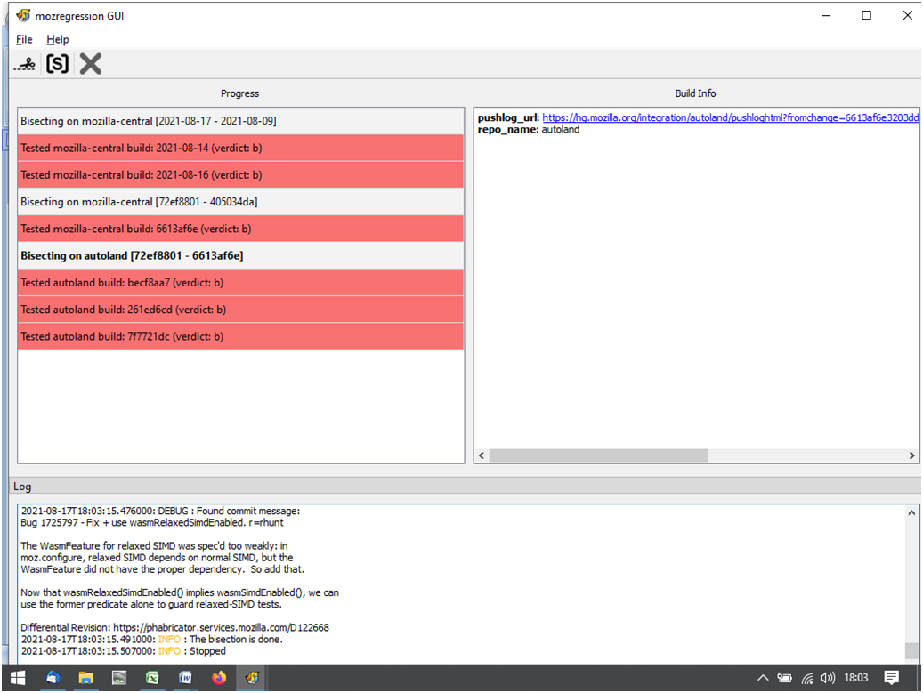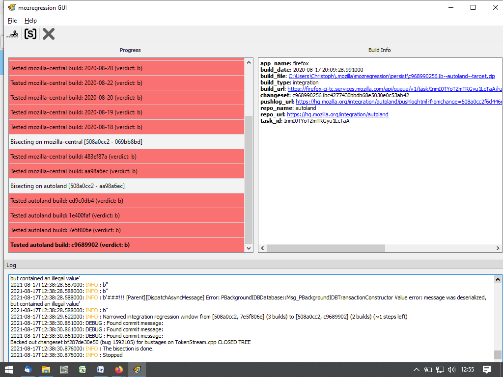 Keine Ahnung was mozregression macht. Habe es nun nochmals laufen lassen: