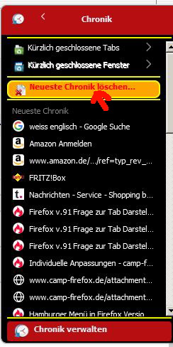 Hamburger Menü in Firefox Version 91