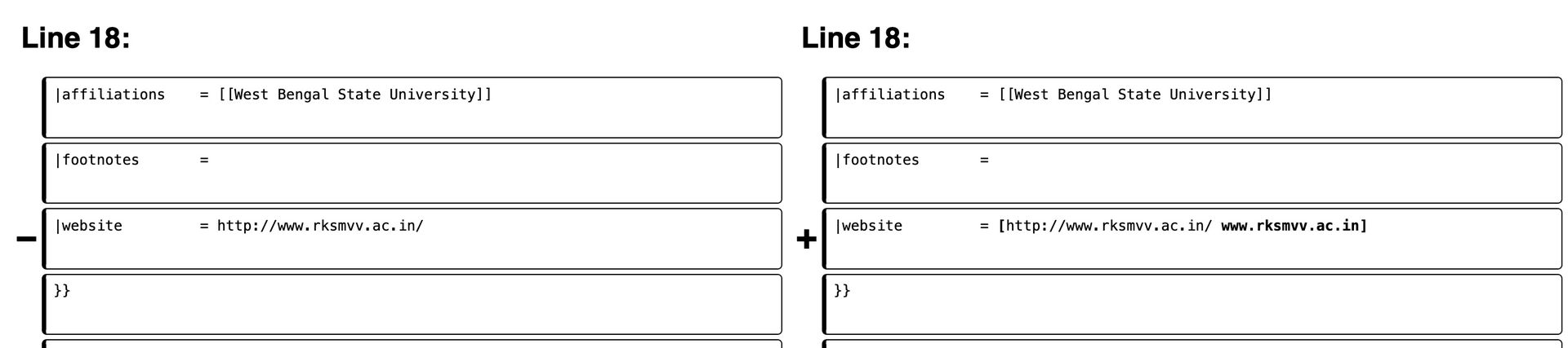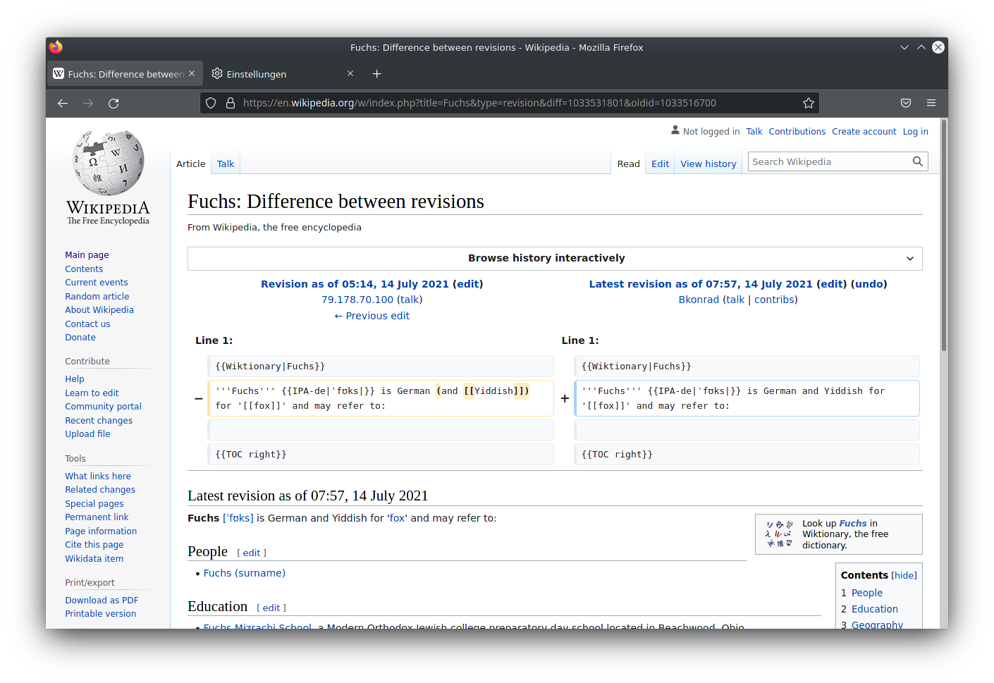 Wenn ich bei Wikipedia etwas ändere, sehe ich fast gar nicht mehr die Änderungen zu vorherigen Version. Das ist aber in anderem Browser nicht so. Dort ist es farblich (gelb) hinterlegt und deutlich zu erkennen.