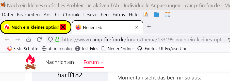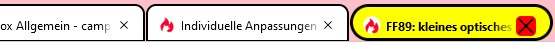 Im aktiven (gelben) TAB ist alles (FavIcon, Text, Schließ-Button) für mein Empfinden etwas zu niedrig.