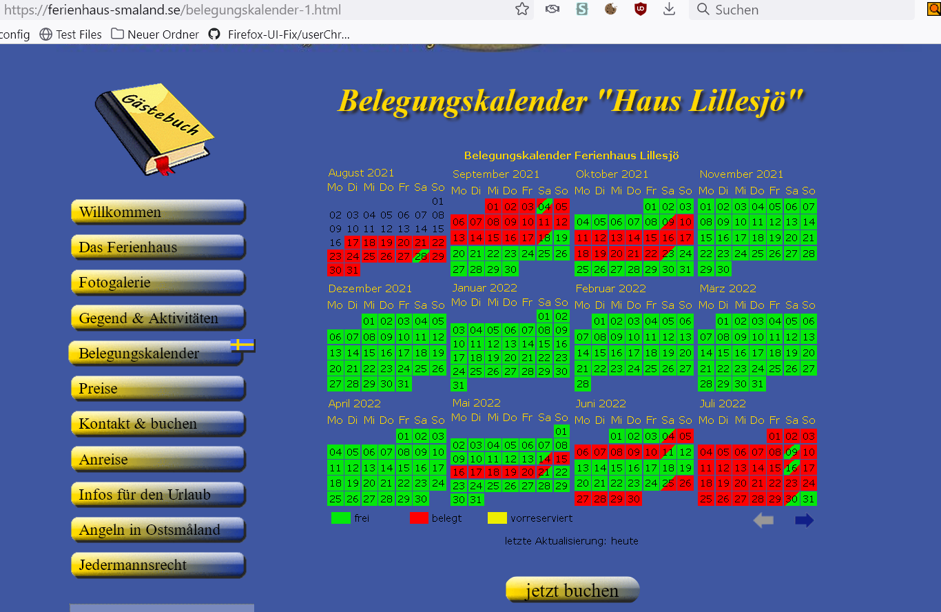 ich wieder mit folgendem Problem. Ich habe auf unserer Ferienhaus Homepage https://www.ferienhaus-smaland.se/ einen Belegungskalender eines Fremdanbieters mit einem <ifame> eingefügt. Jetzt werden wir andauernd von Leuten die unsere Homepage besuchen angeschrieben das der Belegungskalender überhaupt nicht angezeigt wird. Ich hab das überprüft und es stimmt. Auf unserem PC, Lapptop z.B. (beides aktuelleste FF Browser) und dem Samsung S3 meiner Frau (normaler Google Browser) wird der angezeigt aber z.B. auf meinem Samsung A10 Android 10 mit FF Browser 91.1.0. auch nicht. Gehe ich mit meinem Smartfon dann mit dem Google Browser auf unsere Seite wird der Belegungskalender wiederum angezeigt!