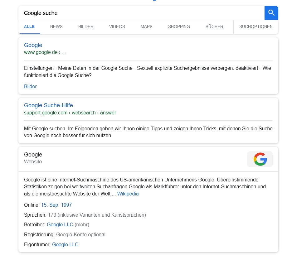 Seit gestern hat auf einem meiner drei Laptops die Google-Suche folgendes Aussehen angenommen. Wenn ich auf dem betroffenen Laptop einen anderen Browser nutze, zeigt dieser bei der Google Suche das traditionelle Aussehen. Gibt es eine Möglichkeit, wieder zu dem gewohnten Aussehen (ohne die „Textfelder") zu wechseln?