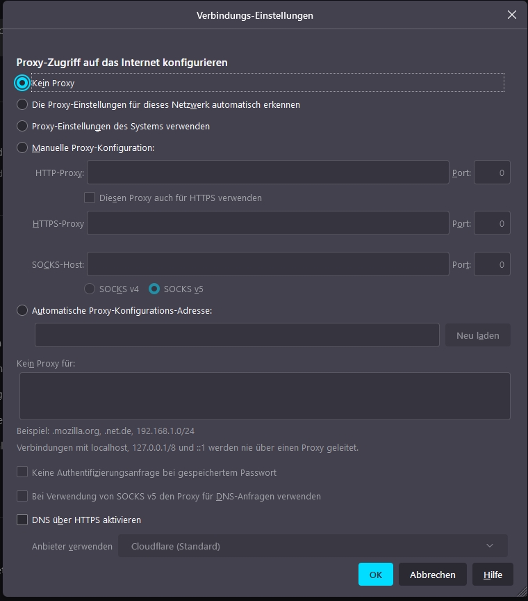 Die Verbindungseinstellung steht jetzt auf: kein Proxy