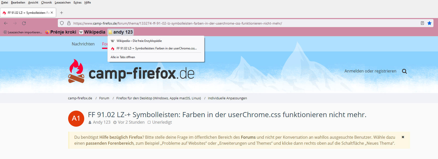 FF 91.02 LZ-+ Symbolleisten: Farben in der userChrome.css funktionieren nicht mehr.