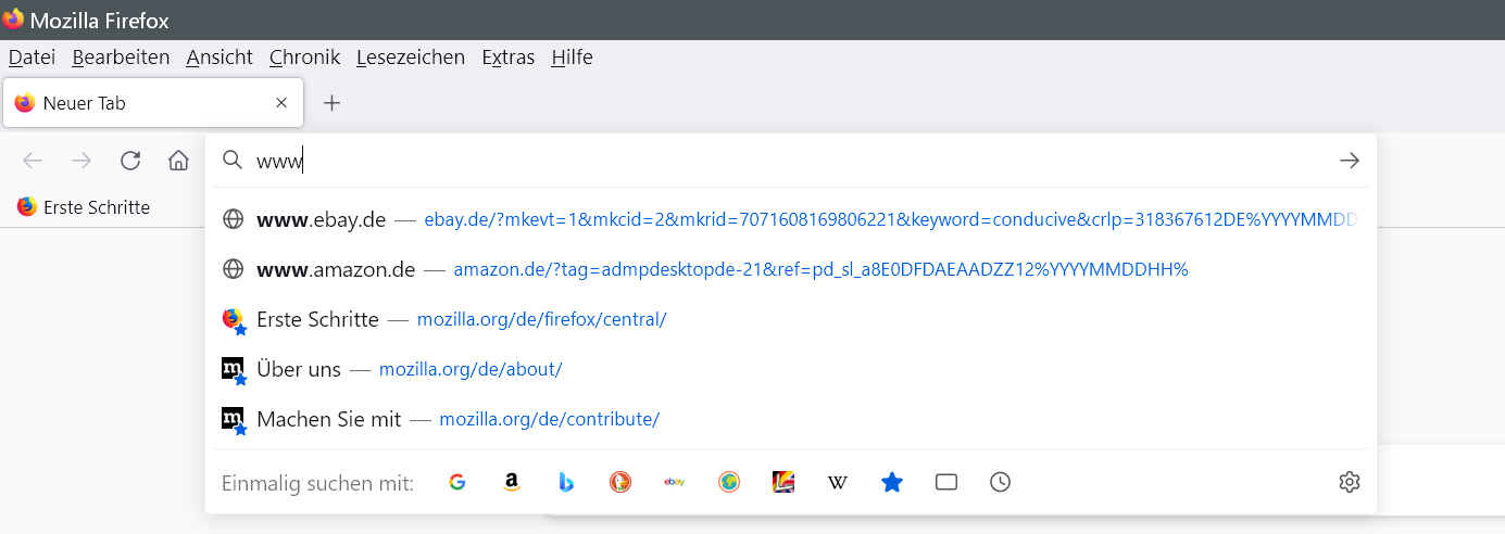 Wenn ich in die Browserzeile etwas hineintippe (z. B. nur das www),