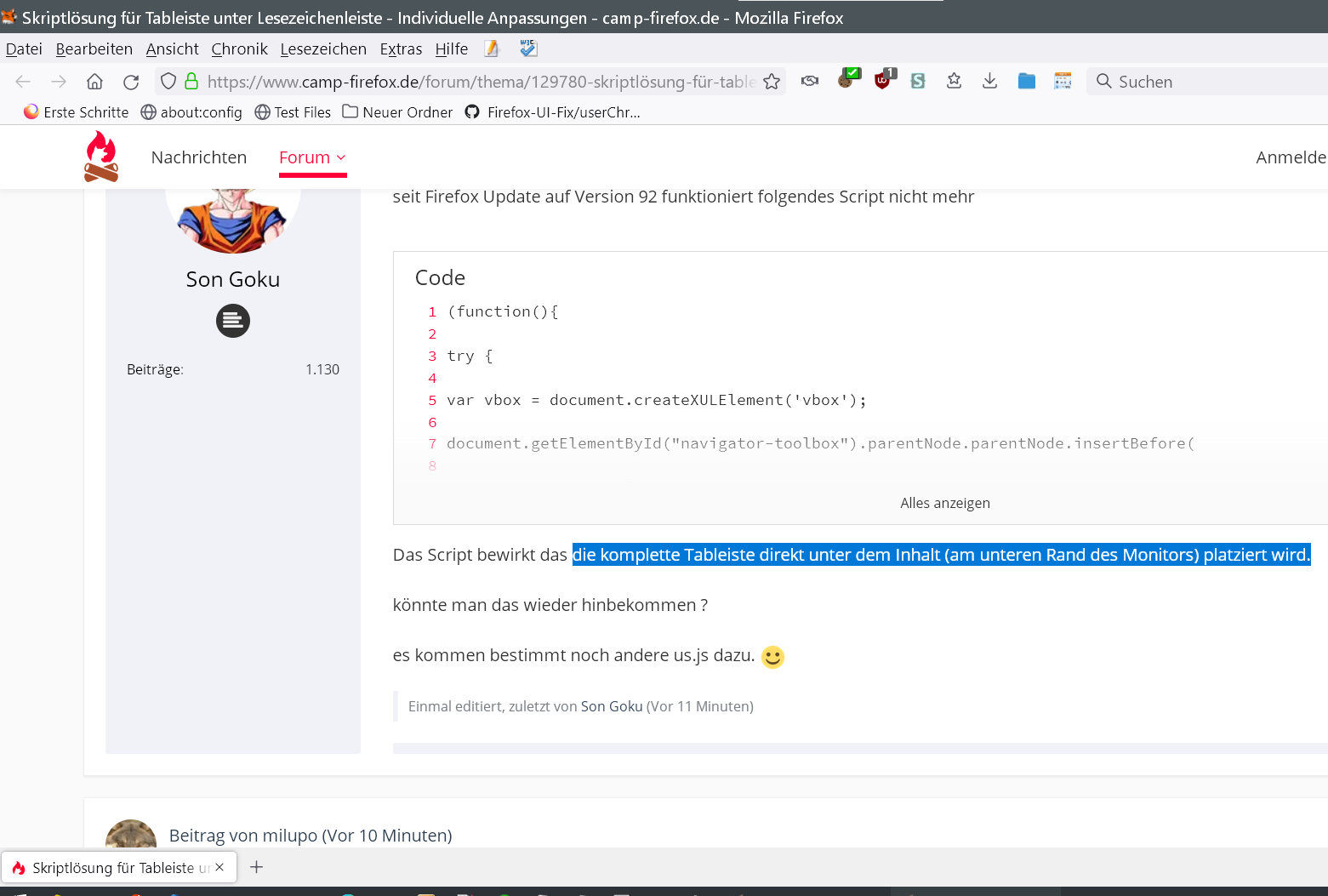 seit Firefox Update auf Version 92 funktioniert folgendes Script nicht mehr