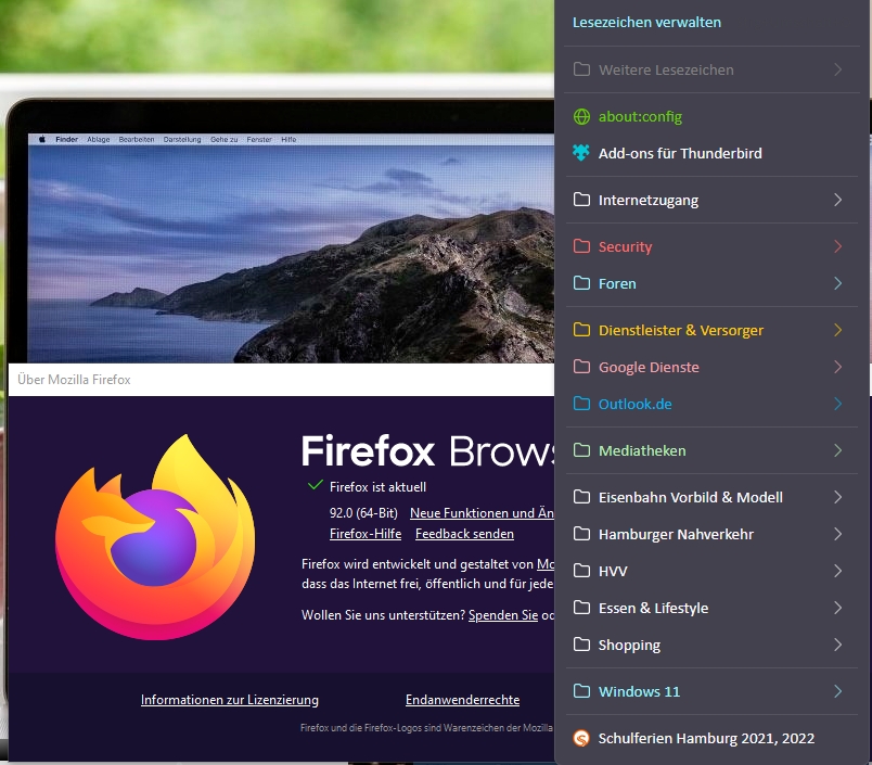 Vorher war das kompakt und ich konnte alle Lesezeichen auf dem Bildschirm sehen.