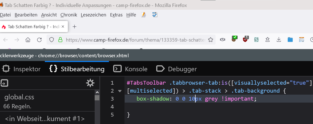 jetzt Frage ich mich gerade, wie kann man den Schatten um den Aktivien tab eine andere Farbe geben ?