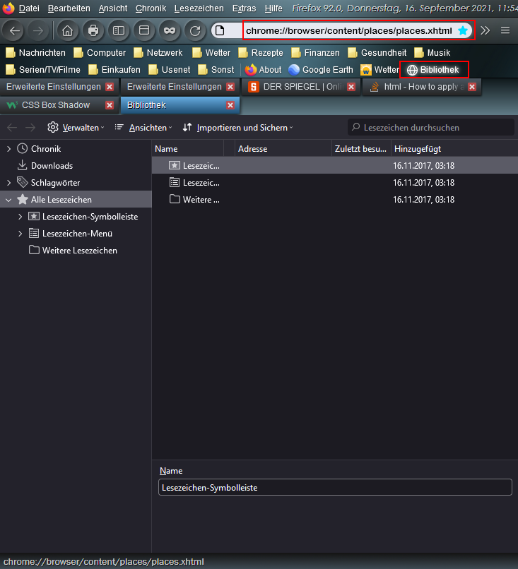 Habe es erst jetzt gemerkt: In der Symbolleiste fehlt neuerdings das icon zum Verwalten der Lesezeichen, das die Biblithek sofort öffnet. In dem Menü zur Anpassung der Symbolleiste finde ich auch nichts derartiges. Offensichtlich habe ich da was verpasst.