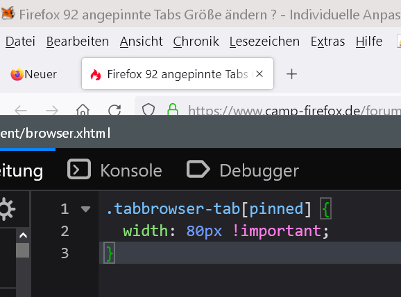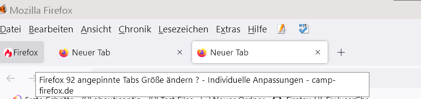 Hm, Dein Screenshot aus #5 sagt was anderes, denn anscheinend wird der Tabtext bei der Anpassung der Breite des angepinnten Tabs doch eingeblendet, so war es auch bei mir, deshalb die Anpassung.