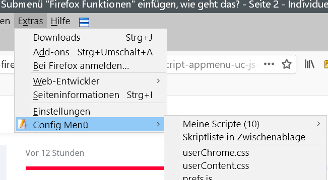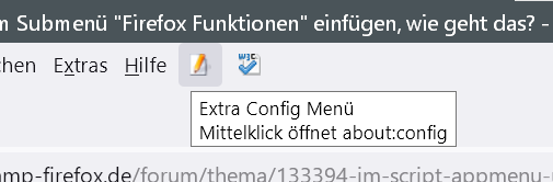 • Ist für dieses Script eigentlich eine besondere Voraussetzung erforderlich? Dieses, aber auch manch andere wie extras_config_menu.uc.js bewirken hier rein gar nichts.