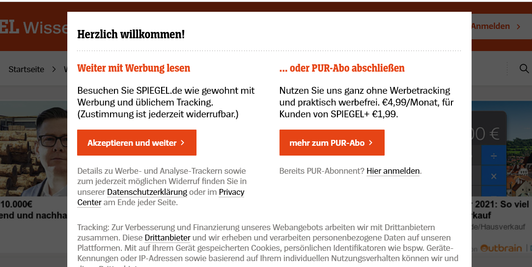 • Das ist die Ansicht nach neu laden hier. Ohne SPON Cookies muss ich erst den Consent akzeptieren. Teste doch bitte ohne Kekse von spiegel.de.