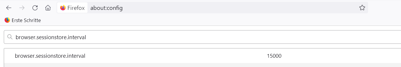 browser.sessionstore.interval erhöhen von 15000 auf 300000