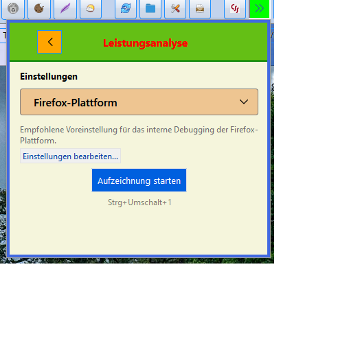 Macht doch überhaupt nichts, Leistungsanalyse gibt es ja auch erst mit der aktuellen Nightly-Version. Am Anfang war auch noch die Schrift da, öffne ich das Menü , so ist oben die Bezeichnung da.