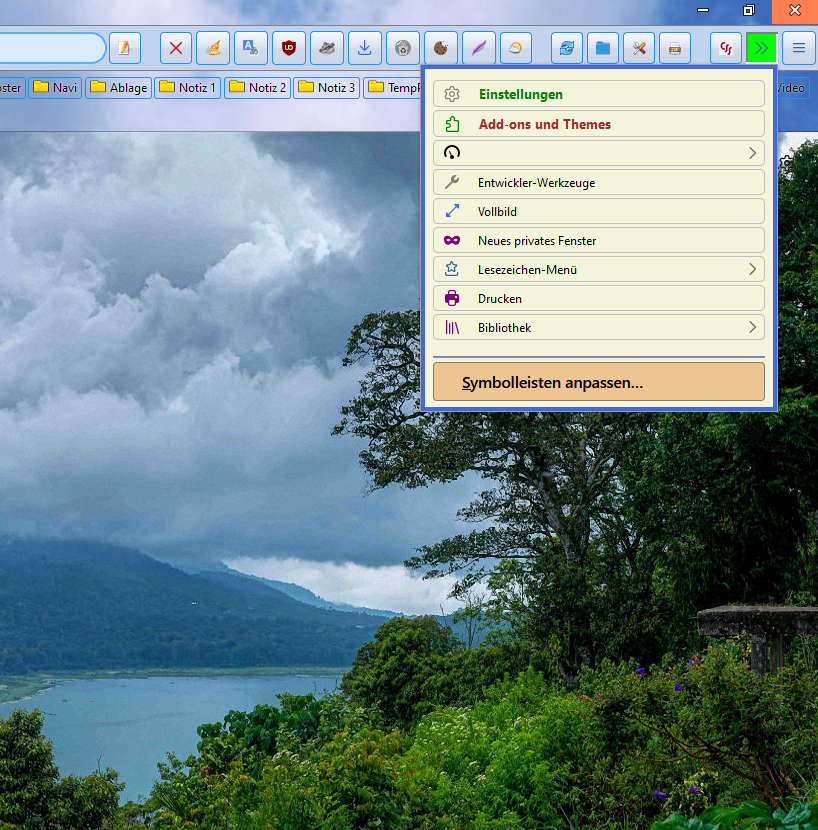 Symbolleiste anpassenHm, wie soll das Menü erreichbar sein? Und nein, Symbolleiste anpassen ist das eher nicht, ansonsten siehe vorangestellte Frage.